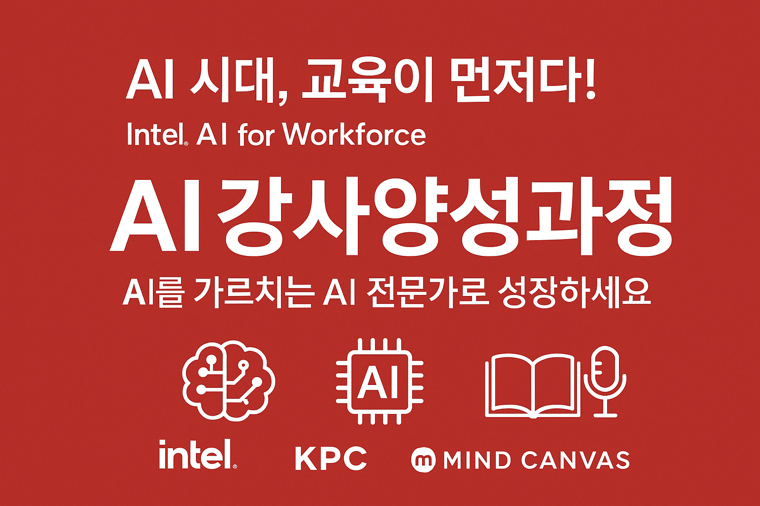 『Intel®의 AI for Workforce-powered by KPC 강사 양성과정』이라는 대학 및 기관을 위한 맞춤형 AI 전문강사양성과정을 개설하였으니 많은 신청 바랍니다.