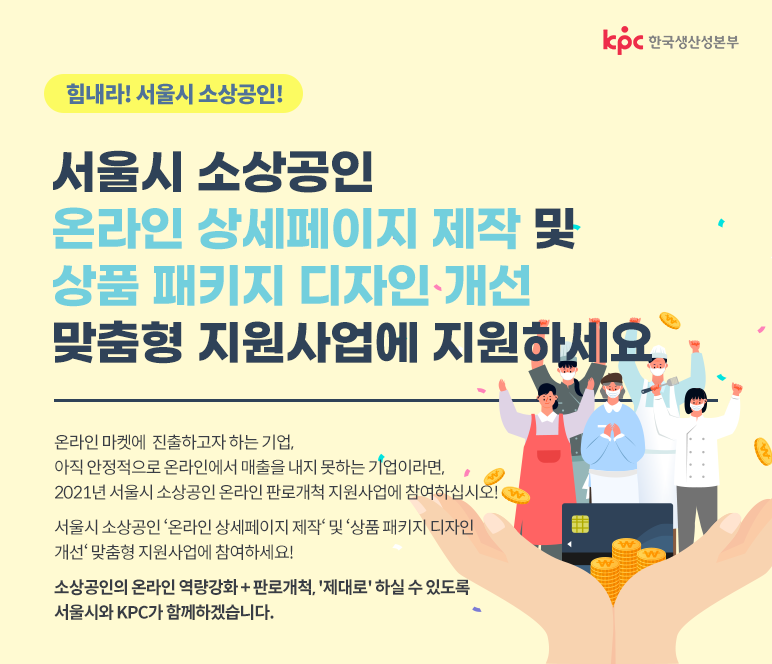 힘내라! 서울시 소상공인! 서울시 소상공인 온라인 판로개척 지원사업에 지원하세요.