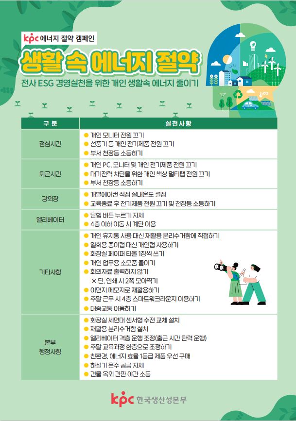 KPC는 생활 속 에너지 절약 캠페인을 통해
