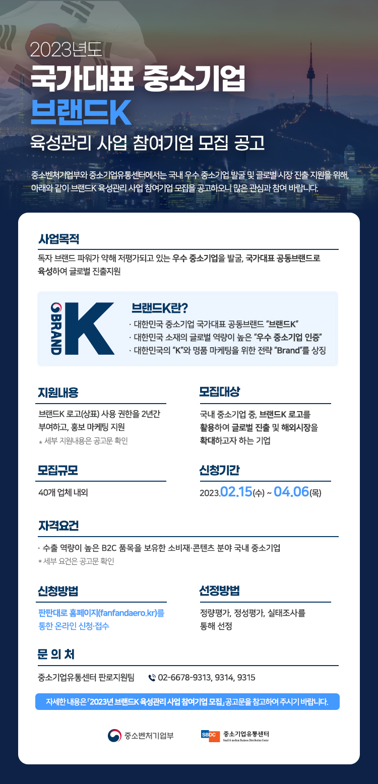 [모집공고] 2023년 브랜드K 육성관리 사업 참여기업 모집 공고