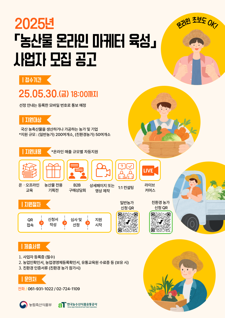 첨부파일 (모집공고) 2025년 농산물 온라인 마케터 육성 사업자 모집.pdf (203.9 KB)