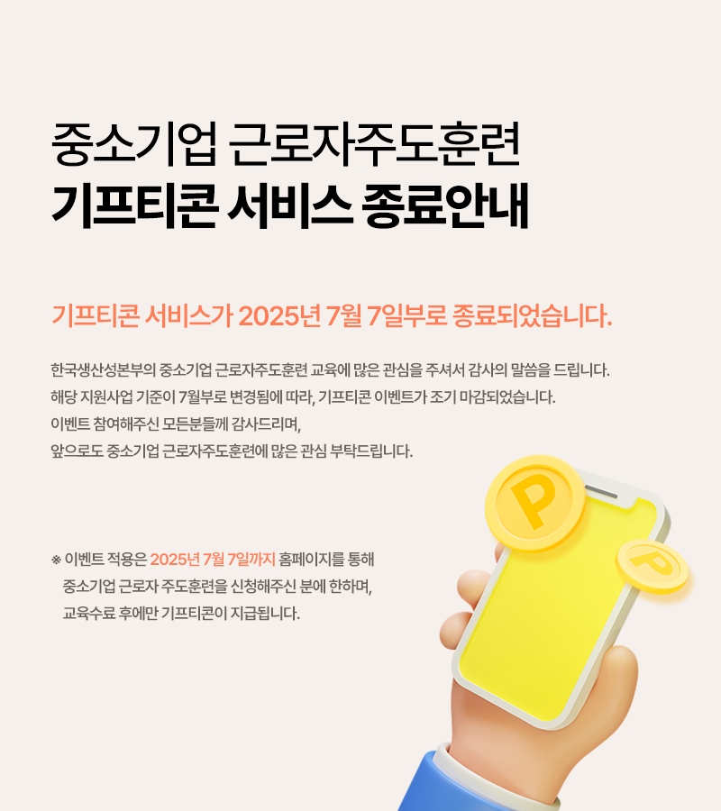 중소기업 근로자주도훈련 기프티콘 서비스 종료안내